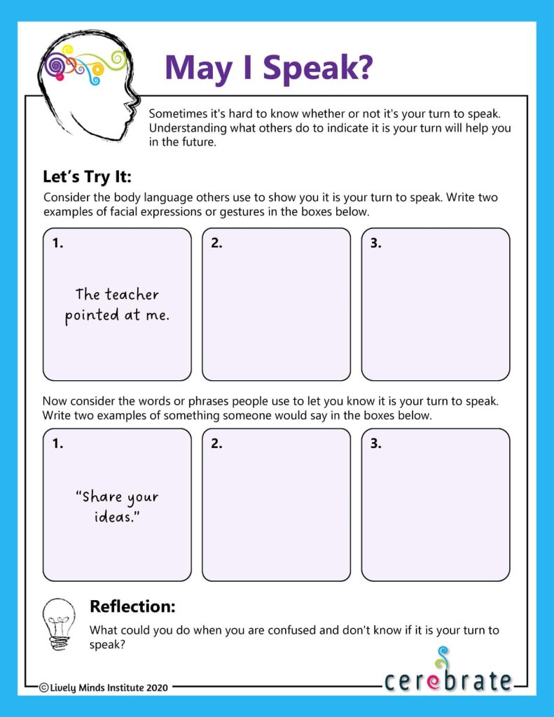 Cerebrate offers a variety of worksheets to go along with the lessons. The students are able to utilize hands-on activities to encourage group participation.